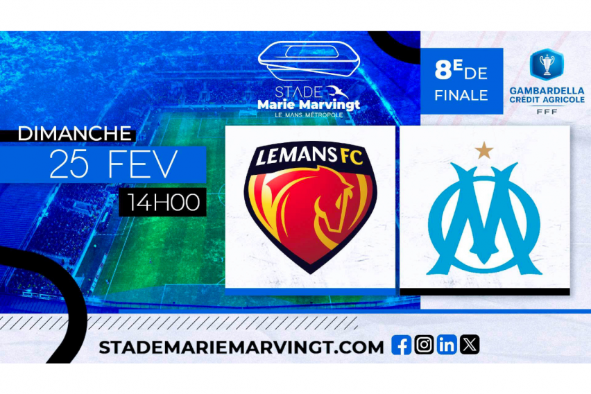 Le 8ème de Finale de Coupe Gambardella entre LE MANS FC et l'OLYMPIQUE DE MARSEILLE se jouera au Stade Marie-Marvingt dimanche 25 février à 14H.